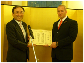Dopredsjednik HJKGD g. Tadić dobio je odlikovanje zbog znanstvenih uspjeha i promicanja prijateljskih odnosa Japana i Hrvatske, 30.4.2014.