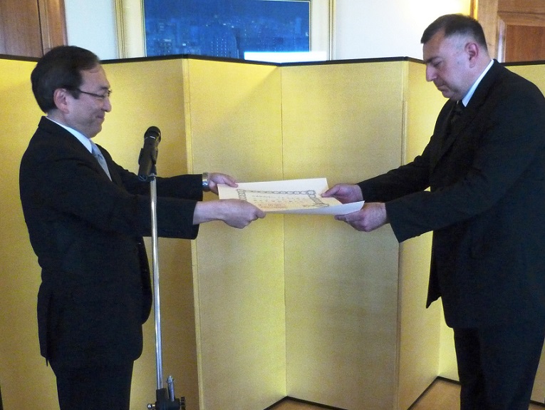 13. studenoga u rezidenciji veleposlanika Hrvatsko japanskom kulturnom i gospodarskom društvu uručeno je priznanje ministra vanjskih poslova Japana.